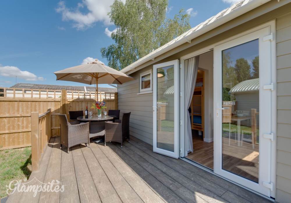 The cabins are fully heated & double glazed and have French doors leading to a decked terrace from which you can enjoy the sunset in the evenings and the beauty of glamping in the Norfolk countryside.