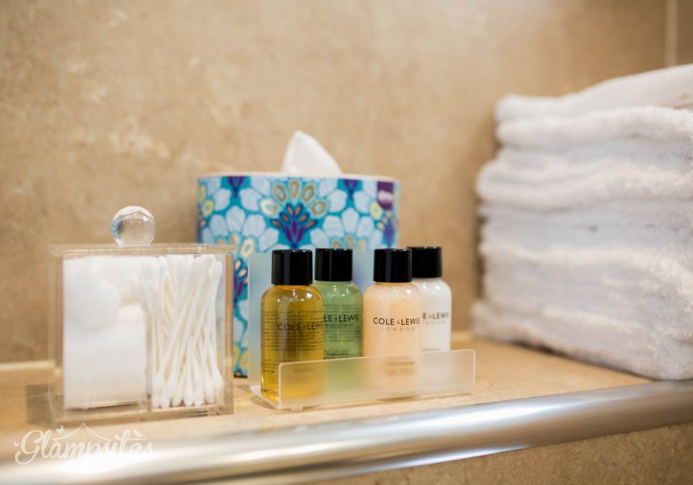 Each cabin has a private en-suite bathroom with toilet and luxury rain shower and a kitchen with fridge freezer, combination oven grill & hob, kettle, toaster, crockery, cutlery & glassware.
