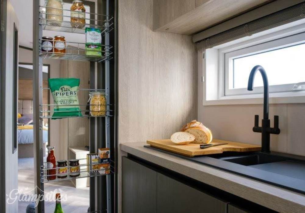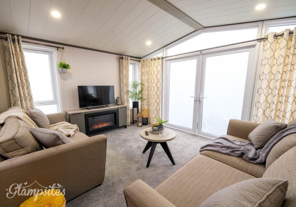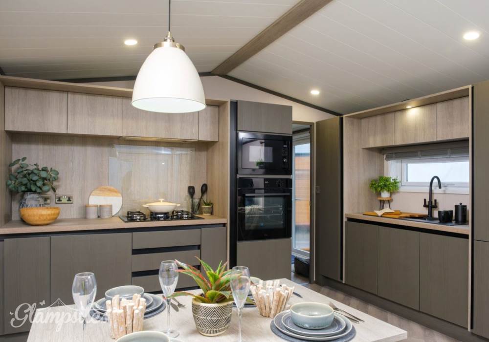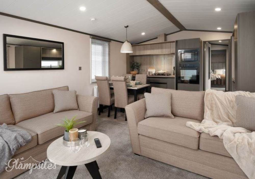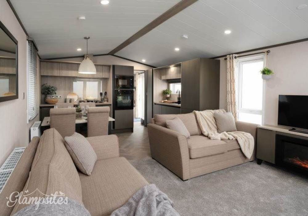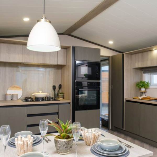 Beechwood Lodge comes with a contemporary open-plan living space and kitchen filled with natural light from the wide front-aspect French doors and windows, modern appliances and a dining area.