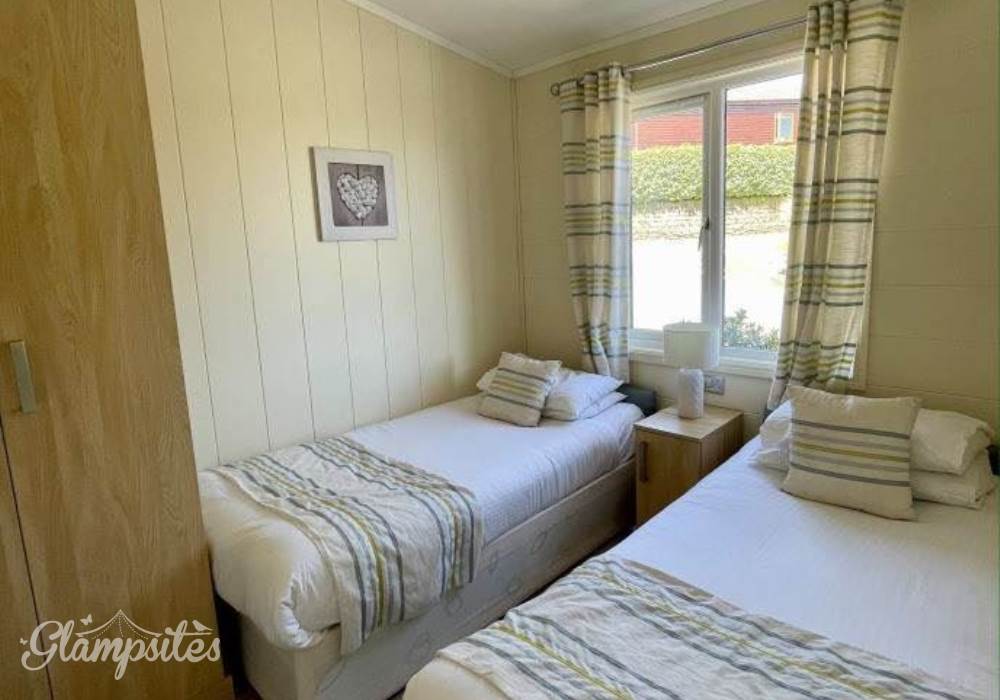 This pet-friendly two-bedroom holiday home includes one double bedroom, one twin bedroom with two single beds and a contemporary family bathroom with bath and shower.