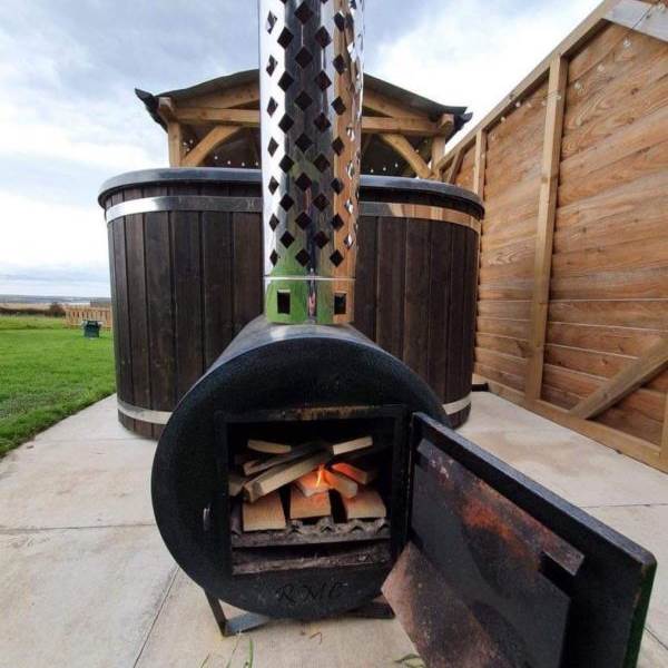 After your journey just light the wood burner and pour yourself a drink whilst the water heats, this takes between 1 to 2 hours depending on how hot you burn the stove, once your tub is up to temp just stir with the giant paddle and sink into the relaxing warm water. Its a truly special experience creating the fire that heats your tub.
