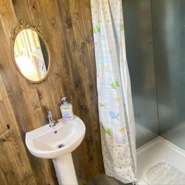 Outside is a large patio area with bistro set so you can sit and enjoy breakfast with the donkey view. Esmeraldas outdoor kitchenette has a cold water sink, double gas hob, crockery and cooking utensils. Off the decking area is your own private shower room. On the grass is an outdoor firepit, perfect for keeping you warm whilst taking in the sunset.