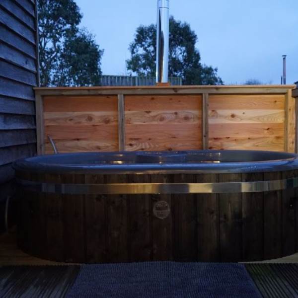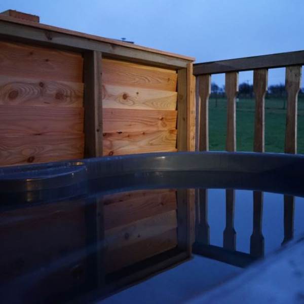 Just a step down from the patio is a 2 person wood fired soaking tub. Its the perfect place to relax after a busy day of exploring. Simply lite the stove and stir the water until it reaches temperature (approximately 1-2 hours heating time), then sink into the warm water and enjoy. There is something special about creating the fire that heats your tub.