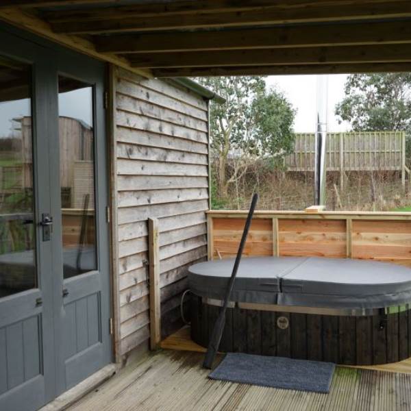 She has a large patio area for open air dining with an outdoor kitchenette with two ring gas hob, cooking utensils and crockery. Off the patio is your own private shower room.