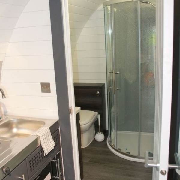 Our new pods offer guests a homely and welcoming glamping experience where you can enjoy the feeling of being at one with nature and the wilderness whilst also enjoying your home comforts. These heated pods, designed with comfort in mind can sleep up to 4 people. The kitchenette area is well equipped with a sink, microwave, fridge, toaster and food preparation area. You will also find cutlery, crockery, and a dining area featuring a table and 4 chairs. The sleeping area is home to a fixed double bed and a double sofa bed - all bedding is provided. The shower room includes toilet, basin and shower which is very spacious with towels being provided. Electric sockets provided in convenient positions throughout the pod.