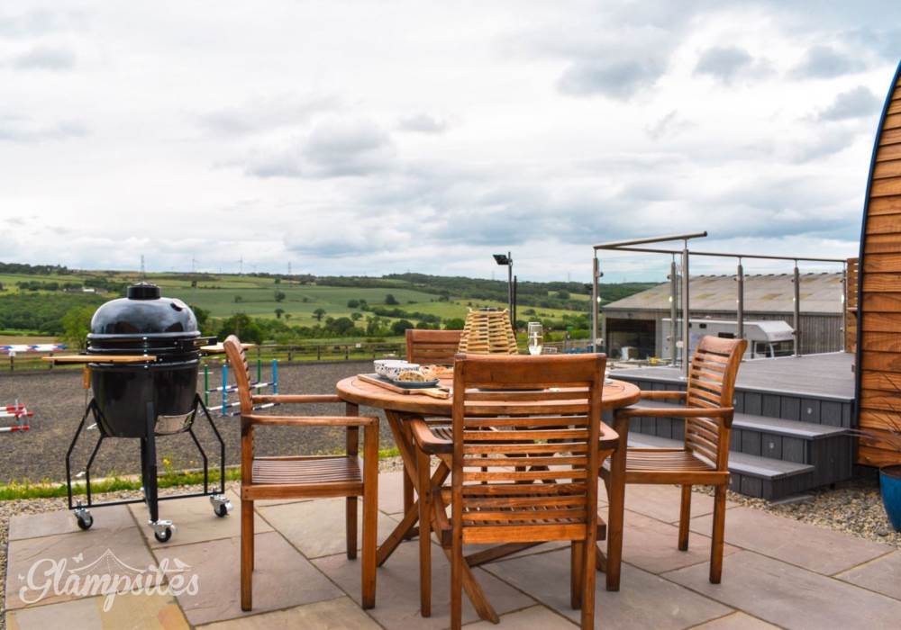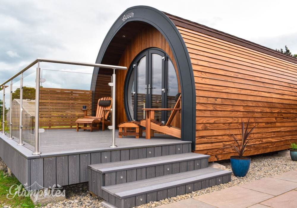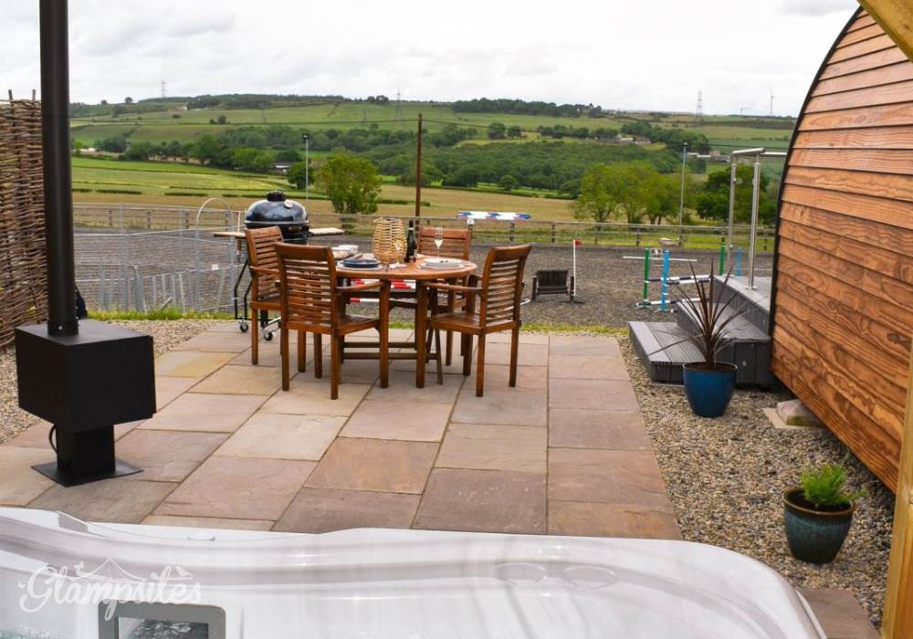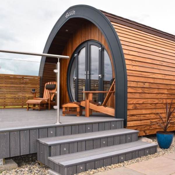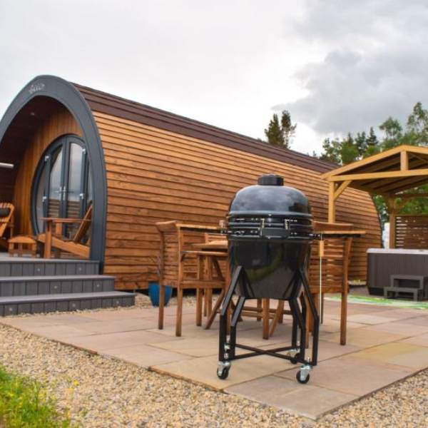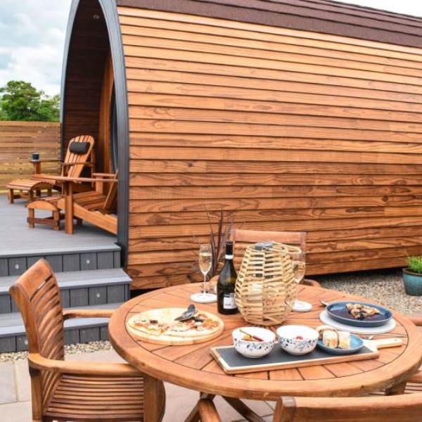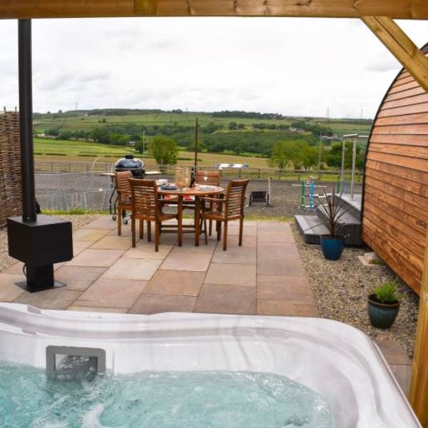 Each pod hosts it's own beautiful patio area, complete with a large jacuzzi hot tub and beautiful wooden pergola, offering complete privacy and accommodating all weathers.