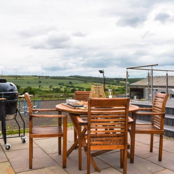 Enjoy delicious al fresco dining with comfortable table seating for up to 4 people, a large BBQ egg, pizza oven and wood burning stove, perfect for cosying up amongst the stars on a chilly evening. You can feel at ease with everything you need on hand, including cooking utensils, crockery, charcoal, logs and fire lighters.