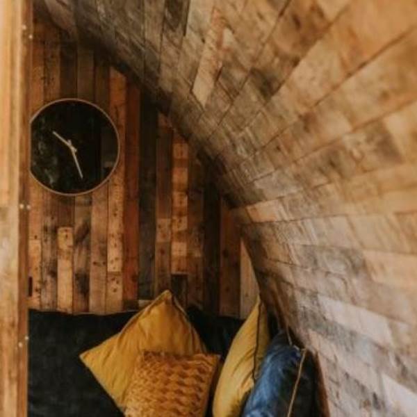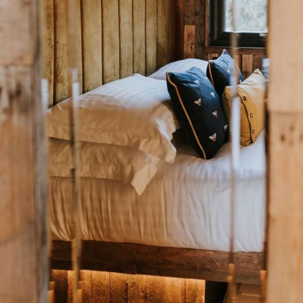 We currently have 2 pods up and running, each sleeping a maximum of 4 guests – (a maximum of 2 adults) with a king-sized bed and bunk beds. The king-sized bedroom has a sliding door to add a little bit of privacy. The children’s bunk room doesn’t have a door but is situated at the end of the pod and still offers privacy with a peaceful and comfortable space to sleep. Please note that we DO NOT provide travel cots for infants and guests would need to provide their own.