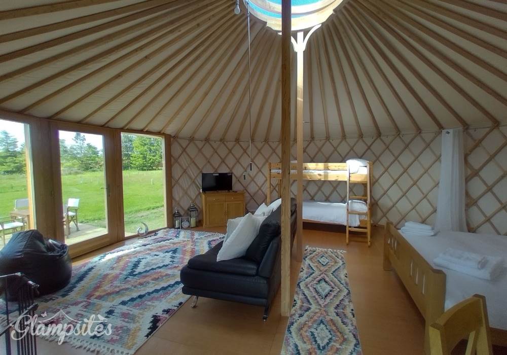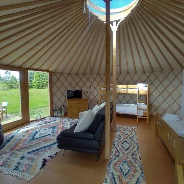 We have two of these top of the range Luxury European yurts, There is a choice of either 6m or 7m diameter. These gorgeous yurts have 7ft high walls, a 9 ft wide glass bay window and a glass centre dome where you can enjoy the views of the fantastic dark nights sky.