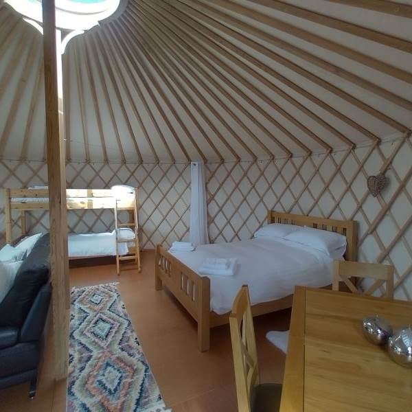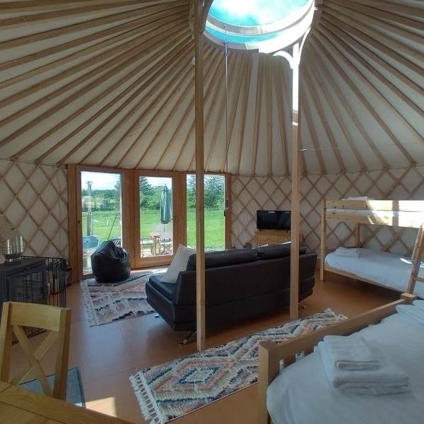 We have two types of these top of the range Luxury European yurts, There is a choice of either 6m or 7m diameter. These gorgeous yurts have 7ft high walls, a 9 ft wide glass bay window and a glass centre dome where you can enjoy the views of the fantastic dark nights sky.