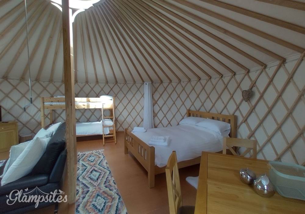 Inside you will find a log burner, a king size bed, 2 single beds (can be bunk beds), a dining table, a sofa and a 1.5. glass dome to stare at the stars as you fall asleep.