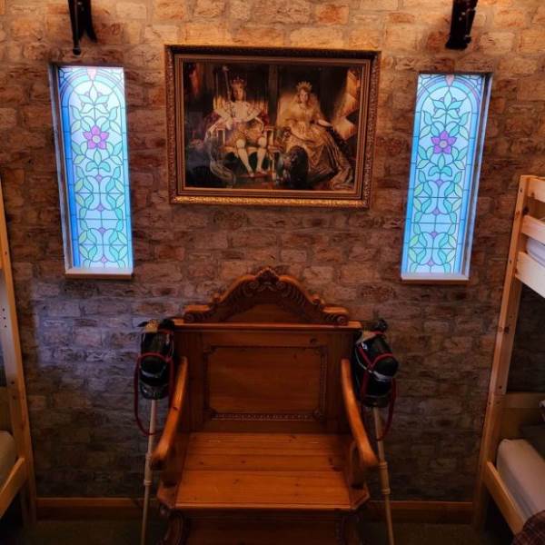 **Important** The Castle is run on a 12V system on our off grid solar power system. This means there are no mains power plugs. There will be USB charging points but there will be no mains power plug sockets.