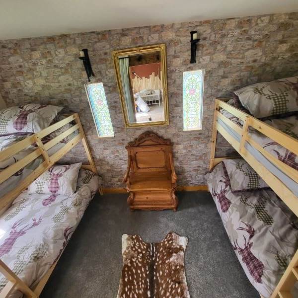 The Castle consists of 2 bedrooms. One with a king-size bed and a second bedroom which can sleep up to 4 (2 sets of bunk beds) All bedding and linen is provided.