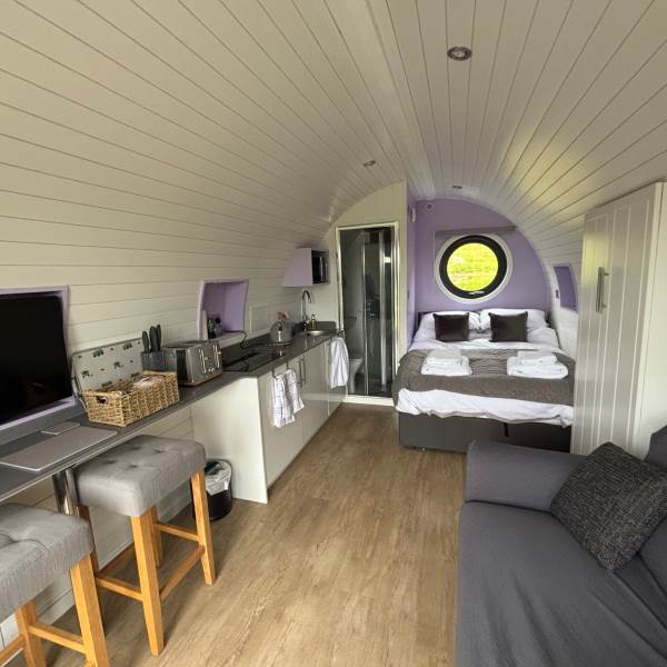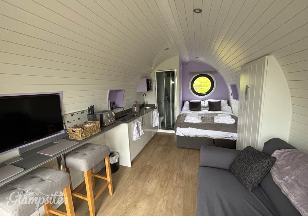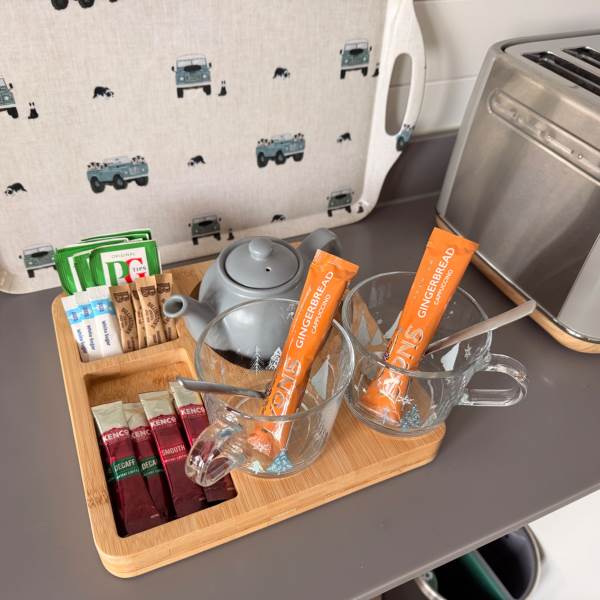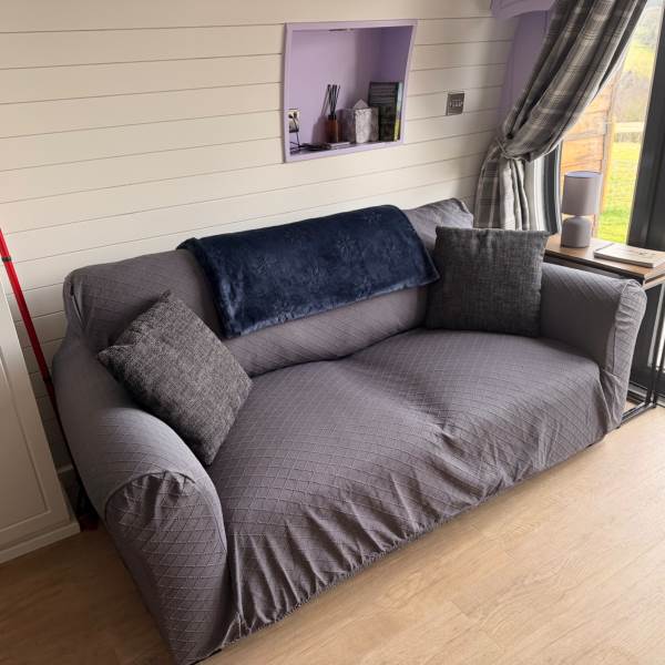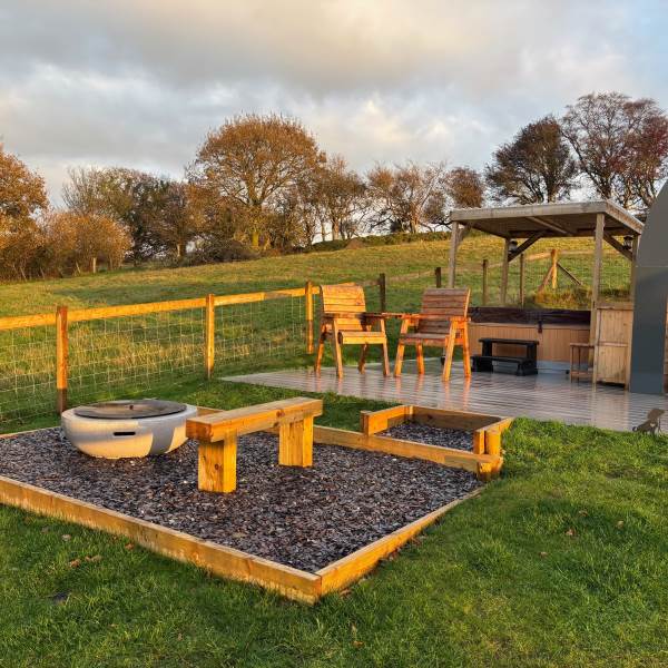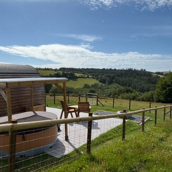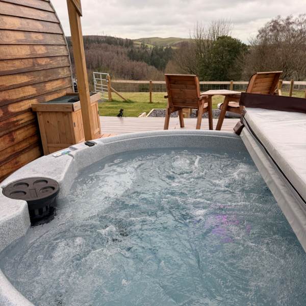 A completely dog friendly property for relaxing getaways, where you don't need to leave your best friends behind! With stunning mountain and field views all around, you can relax in the hot tub or next to the fire pit and watch the sun go down, all while your dog stretches out on the decking or does zooms round the garden. With a fully equipped kitchen, including induction hob, microwave, fridge and welcome basket, a double bed, comfy sofa, smart tv and free wifi included, you have all you need for a realxing stay. Your dog(s) will be made to feel as welcome as you (if not more)! There is a welcome basket for them on arrival, a water bowl, sofa and bed covers so they can snuggle up, and even a doggy playground next to the car park! After a busy day exploring, come back and snuggle up for a cosy movie night, or see the amazing starry sky from the hot tub or fire pit.