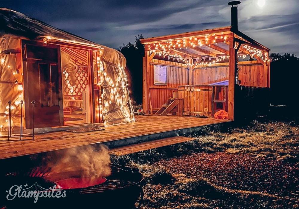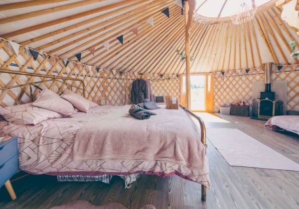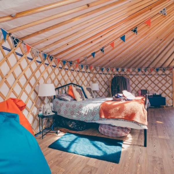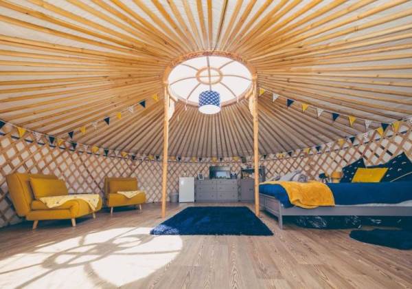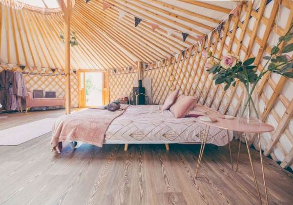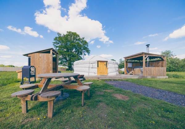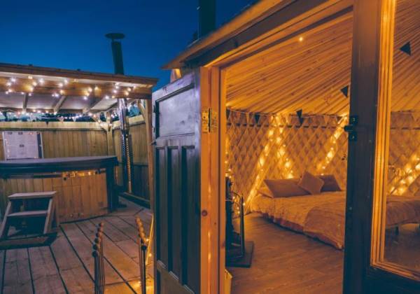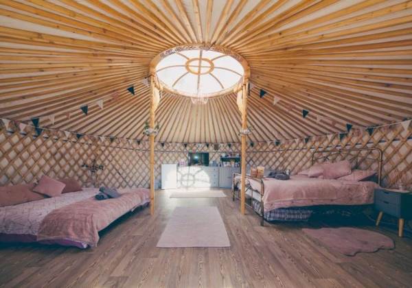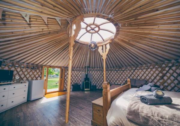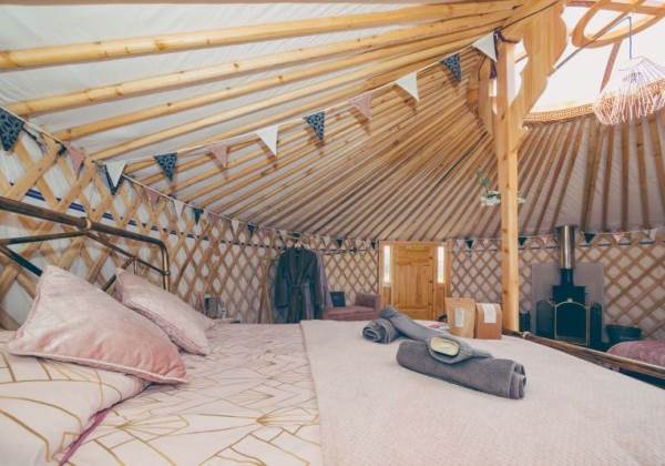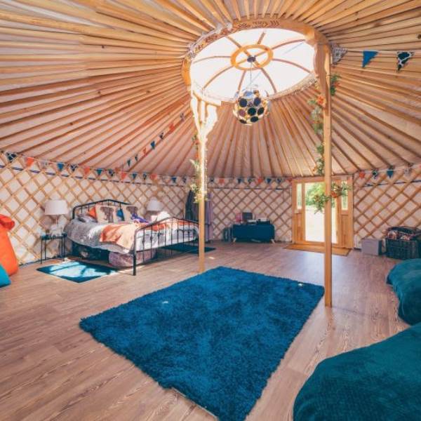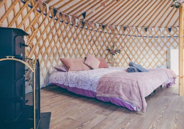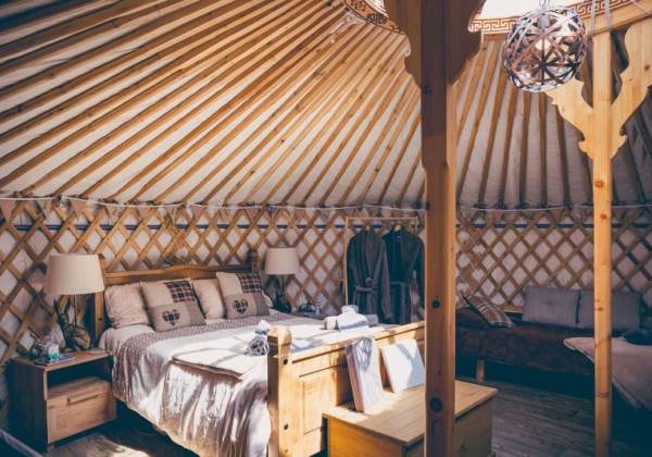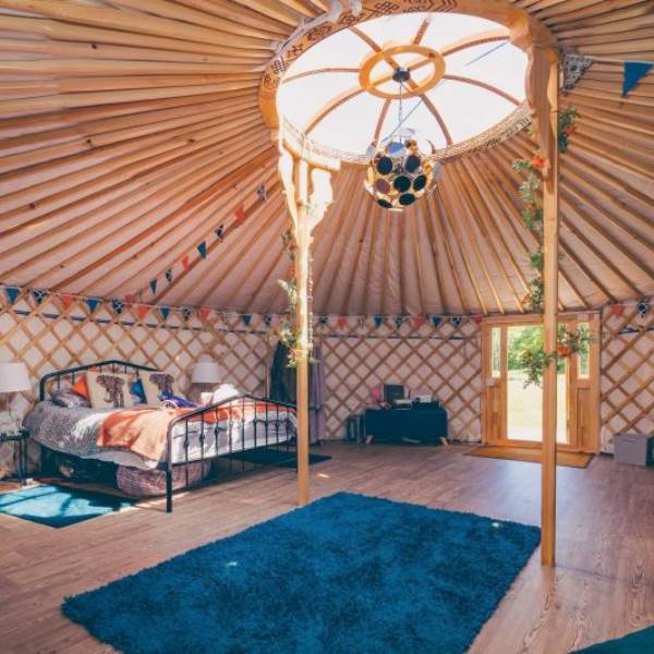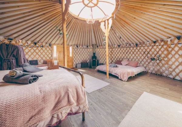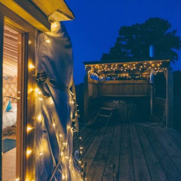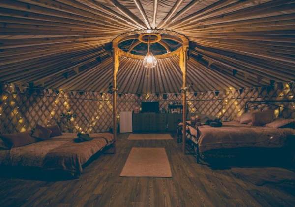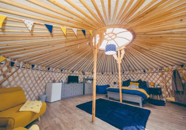 The site has five luxury, heated yurts each with it's own individual theme/colour scheme making them all unique! You will also have your own, private wood fired hot tub (including jets and lights!), private heated bathroom with flushing toilet, private kitchen with double gas hob, fridge/freezer, BBQ/pizza oven, fire pit, all utensils, crockery and much more included the accommodation price!