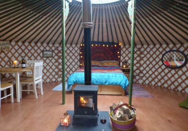 The interiors of glamping yurts are designed with luxury and comfort in mind. Plush furnishings such as comfortable beds, luxury rugs, and scatter cushions create a welcoming retreat after a day of outdoor adventures. The inclusion of a wood-burning stove adds warmth and rustic charm, ensuring a comfortable stay regardless of the weather conditions. Additionally, some yurts offer private hot tubs, perfect for relaxing and stargazing in the evening.