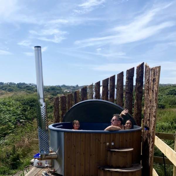 The Dome is sat on a deck and has a stove and thermal liner to ensure you'll be cosy on colder days. It's a short walk to the communal amphitheatre fire area, hot tub and our private swimming spot "Castle Strand".