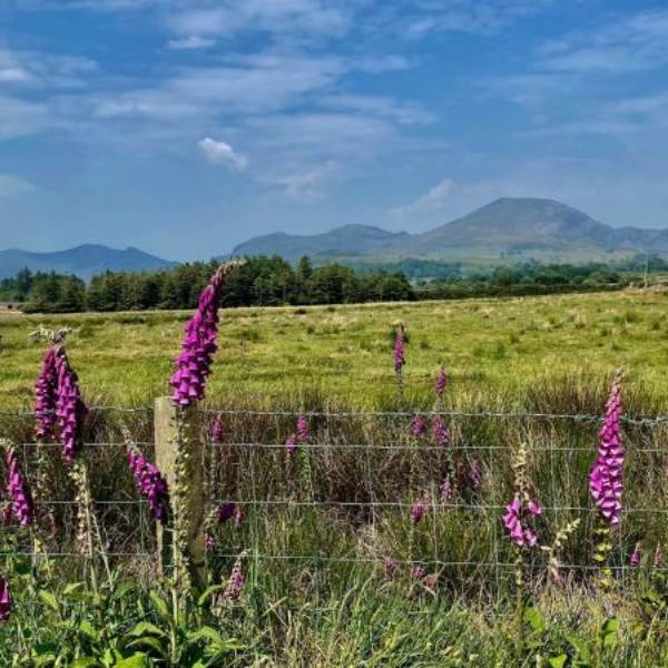 The Moel yr Ogof glamping pod is located in a quiet tree lined corner of the farm which enjoys stunning views of the Snowdonia mountains and the Cambrian coast.
