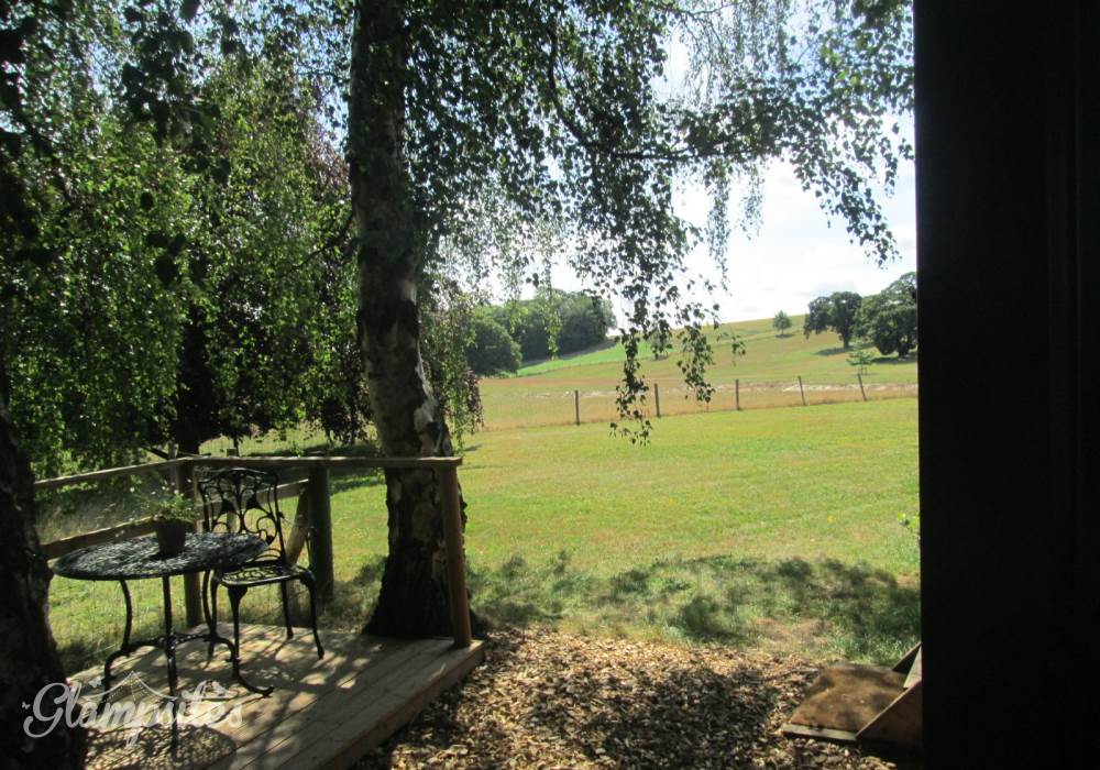 Outside private decked area with table and chairs and BBQ to enjoy lovely country views