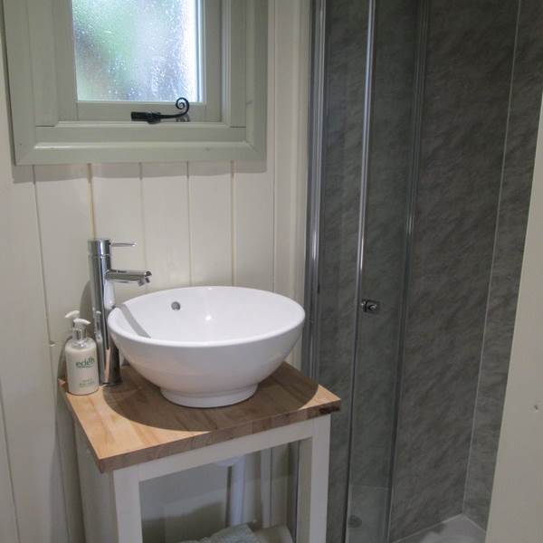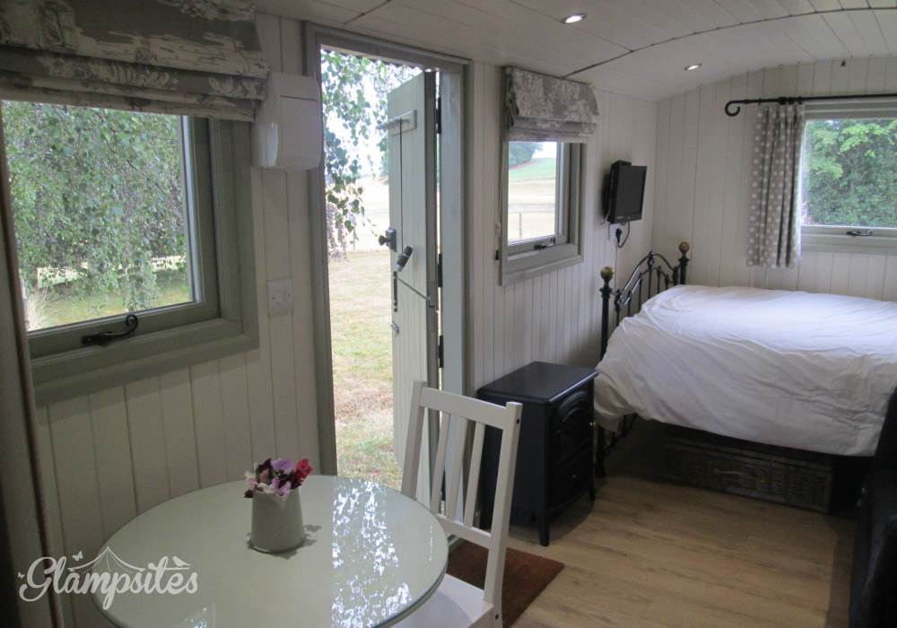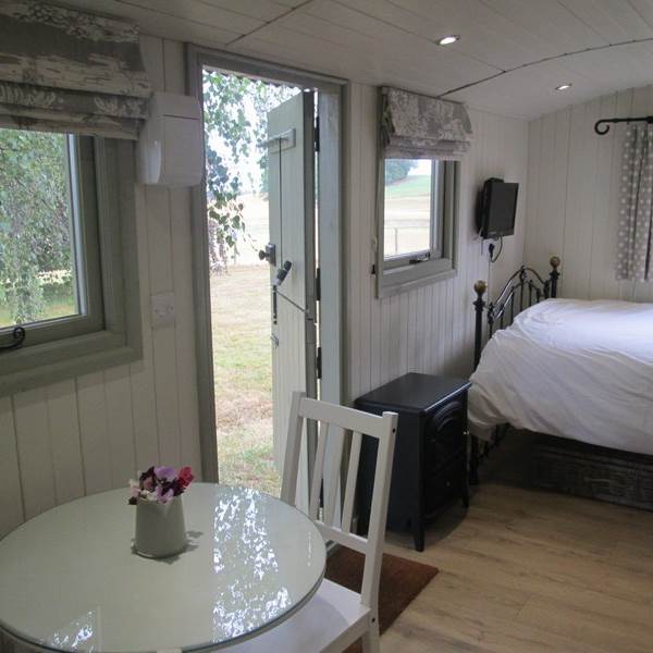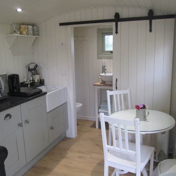 Luxury Shepherds Hut 18 ft x 8 ft with en suite shower room and kitchen area, sleeps two people.