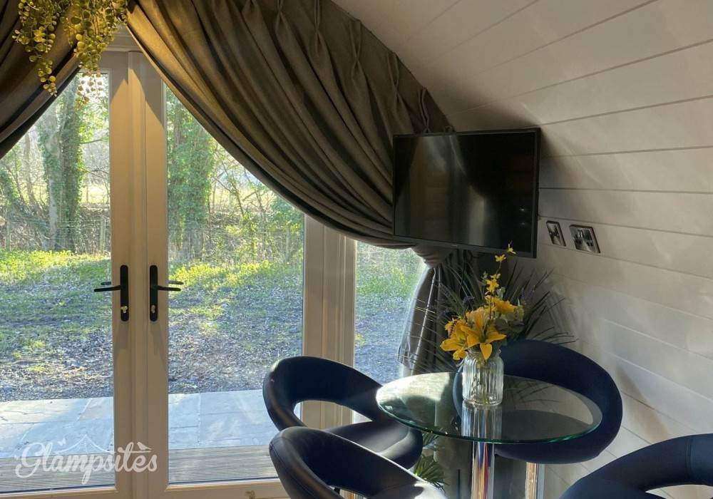The Oley is our end door glass panoramic entrance pod situated perfectly on the edge of the River Derwent to allow you to soak up the riverside views from either inside your pod or whilst relaxing outside in your hot tub.
