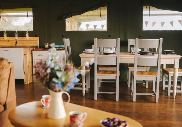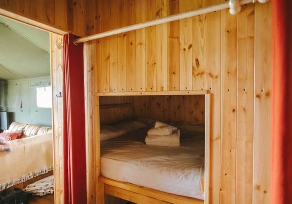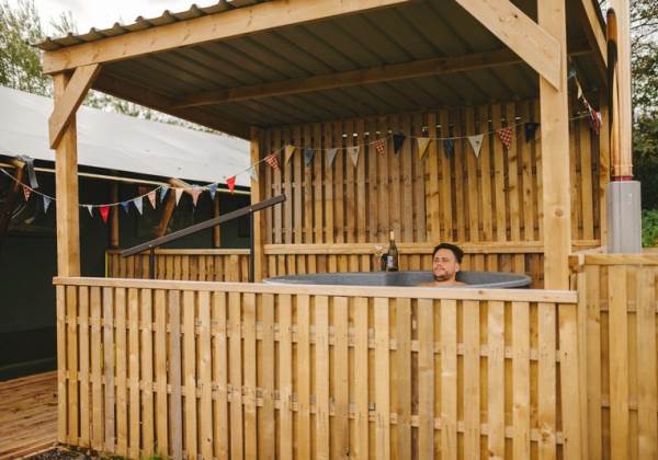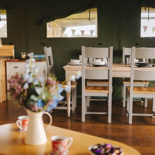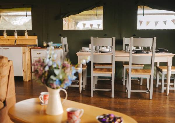 Burry Holms is one of our well-equipped Glamping tents. each tent has electricity, a fridge freezer, full-size electric stove, log burner, with logs to start you off. The field is very peaceful and the perfect place to relax and unwind, switch off your phone and just enjoy the fresh air and the open space. Outside each tent, there is a picnic bench, fire pit/bbq. Burry Holms is one of our units benefitting from its own private hot tub. The children’s play area is easily accessible from your tent, and the children are safe to run and play within the enclosed field. There is also a football net in the field, and flat enough for a game of cricket.