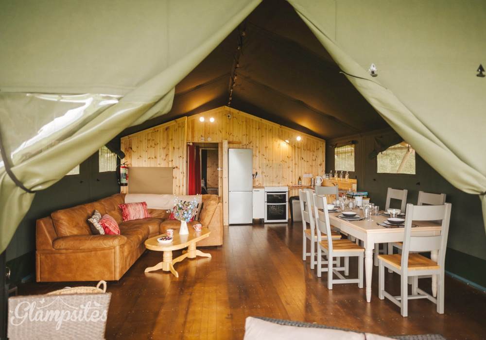 Three Cliffs is one of our well-equipped Glamping tents. each tent has electricity, a fridge freezer, full-size electric stove, log burner, with logs to start you off. The field is very peaceful and the perfect place to relax and unwind, switch off your phone and just enjoy the fresh air and the open space. Outside each tent, there is a picnic bench, fire pit/bbq. The children’s play area is easily accessible from your tent, and the children are safe to run and play within the enclosed field. There is also a football net in the field, and flat enough for a game of cricket and we are lucky to be in an A.O.N.B.