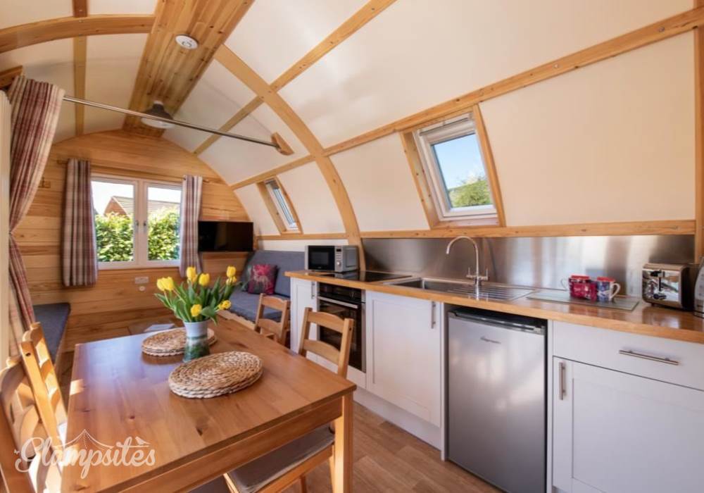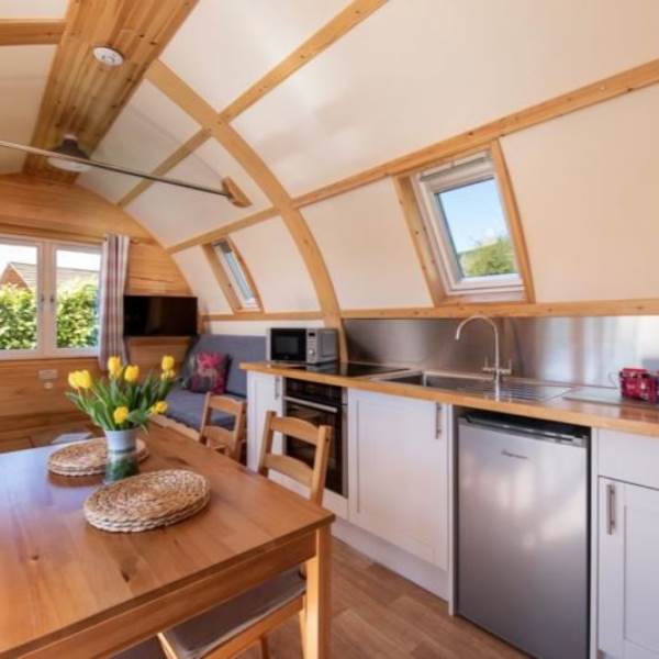 With en-suite facilities, a kitchen area (with hob, oven, prep area, fridge), cutlery, crockery, glassware), dining table and chairs, comfy beds and light, airy interior, seating area, bedding, towels, TV, coffee table and more.