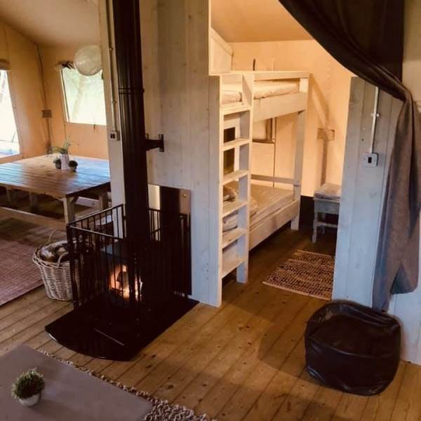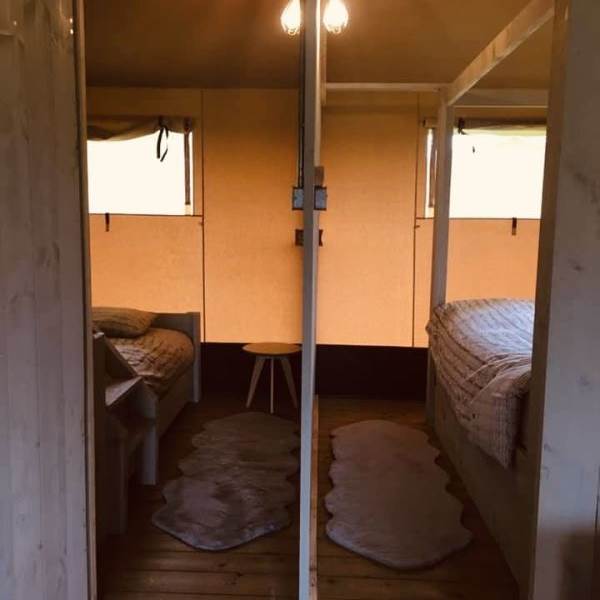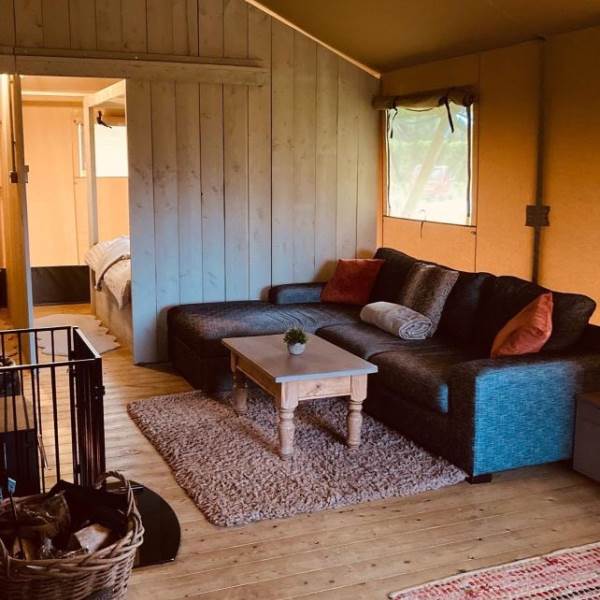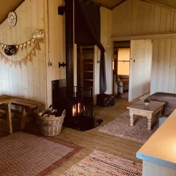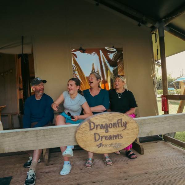 Dragonfly Dreams is a fabulous, spacious glamping tent here at Kingfisher Lakes in East Yorkshire, sleeping 4-10 people so is perfect for 2 families or extended family to stay together.