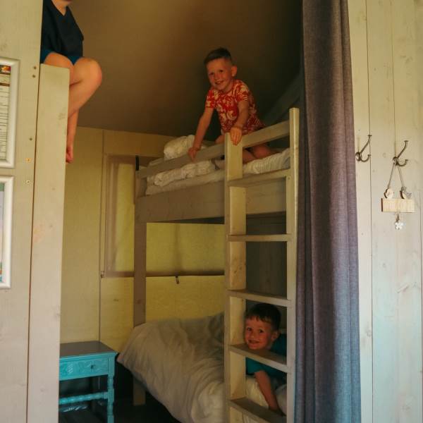 Two super king beds (one with a single bunk above) and a bunk room sleeping 4 kids or adults.