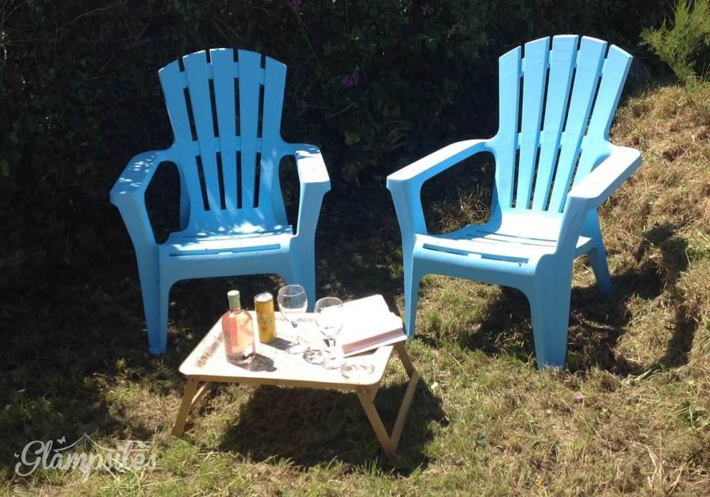 There is a heater for chilly evenings. Under the pretty awning there is a table for 2 a fire/BBQ to complete the experience. We supply wood and kindling for your first fire. You can purchase more locally or bring your own.