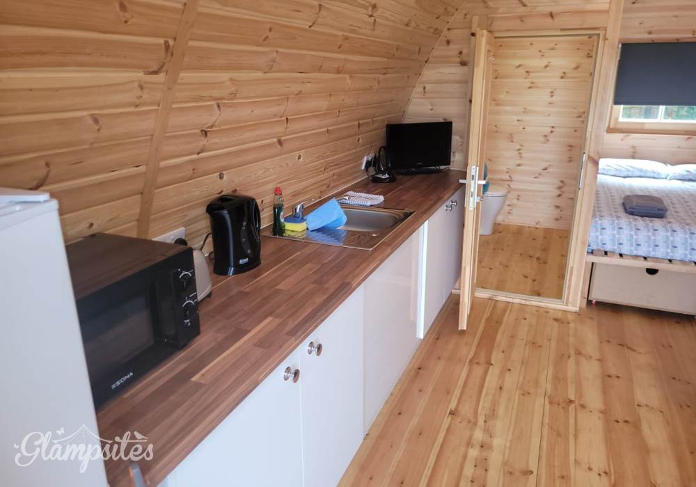 Guests have access to their own in-pod kitchenette which includes a sink, kettle, toaster, fridge, microwave, cutlery and utensils.