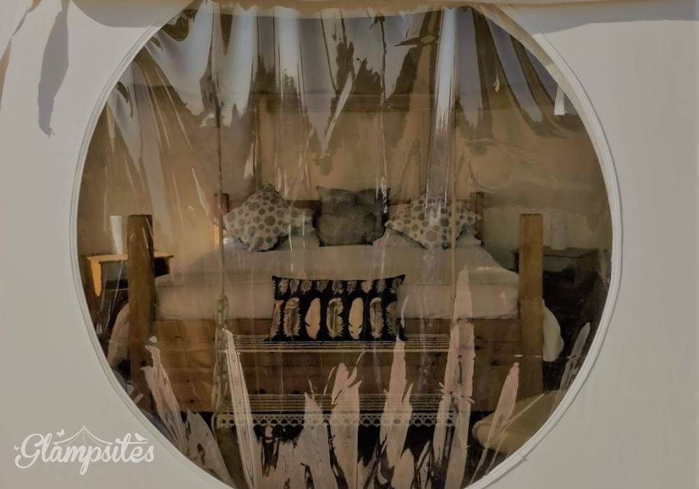 This is our Nomadic Yurt (a modern re-invention of the classic Mongolian yurt) with a diameter of 5 metres, an internal area of 15.7Msq. It has a Super King sized bed and a multi-fuel stove. Suitable for couples, spacious enough for a travel cot for new parents. Includes a private deck and barbeque area.