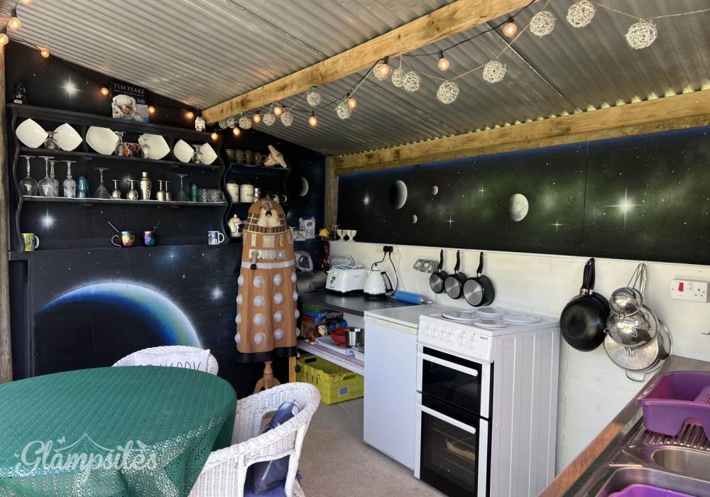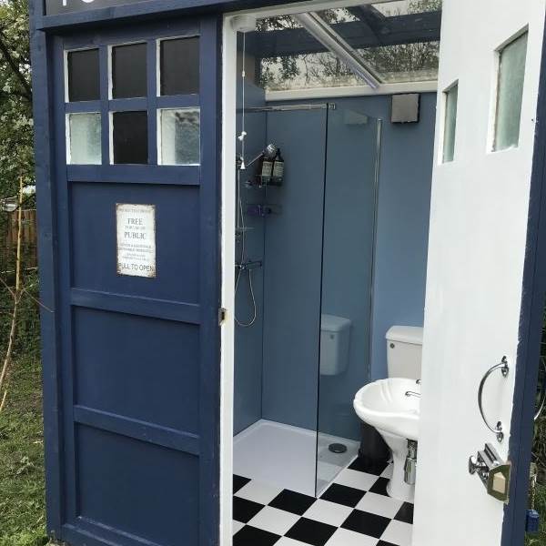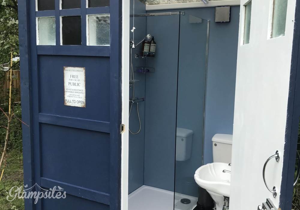 The TARDIS offers heated facilities, including a shower, toilet, and hand sink, ensuring privacy and convenience during your stay.