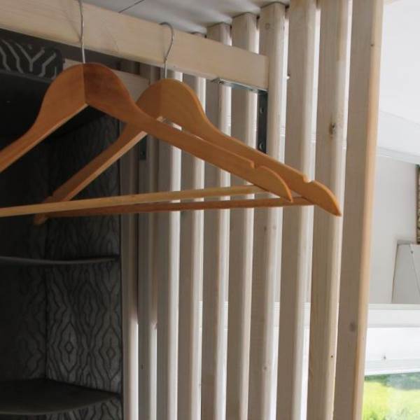 One of the highlights of Gertie's charm is her off-grid status. Situated on her own pitch amidst young trees, guests can disconnect from the hustle and bustle of everyday life and reconnect with nature. Despite being off-grid, Gertie doesn't compromise on convenience. Inside, guests will find phone charging plugs and lighting powered by solar energy, ensuring a sustainable yet comfortable stay.