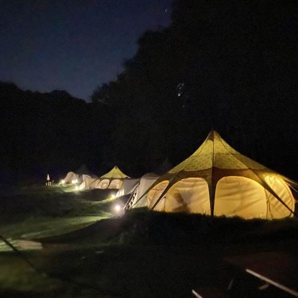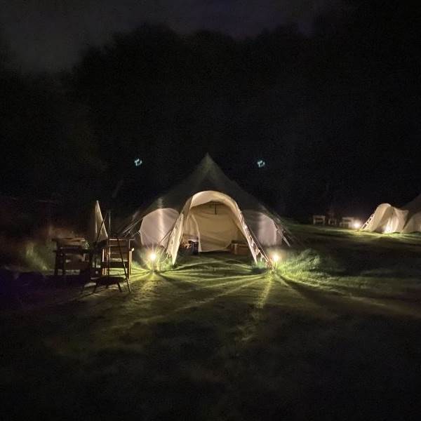 Our tents are off grid, so we provide a solar portable power pack with USB sockets for phone charging and solar lights for those darker evenings.
