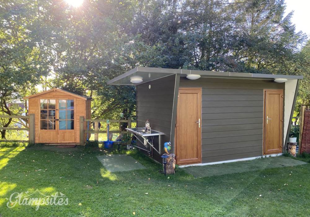 Lotus Belles are surprisingly spacious, they have a porch area which extends the living area and is ideal for outdoor clothes, muddy boots etc, they are topped with a leafy green cover to protect the bats and wildlife from any light spill. (we even have a Lesser Horseshoe Bat roost in one of barns with a Bat Bench to watch them leave at dusk which is quite spectacular)