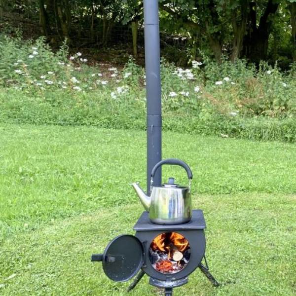 Outside you have a private seating area with comfy chairs and table, a hammock and wood fired stove to boil a kettle or cook breakfast on. To keep you warm and cosy on the cooler evenings, each tent has a fire pit with hanging grill for that essential BBQ.