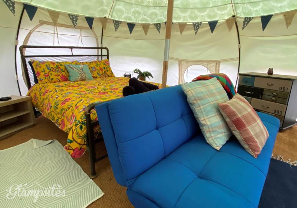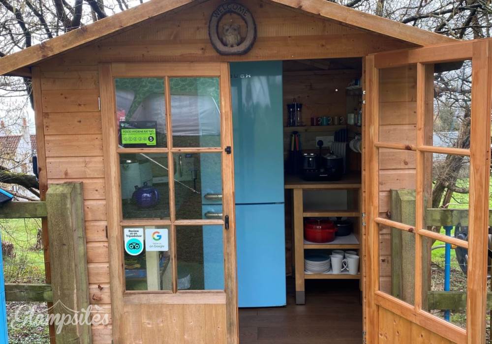 The tents are equipped with Crockery, Cutlery, pans etc along with a large cool box to keep your Prosecco cold on the warm evenings. There is an ordnance survey map of the local area and a pair of mini binoculars for wildlife spotting (lots of squirrels, rabbits, badgers, foxes, pheasants, many types of birds and of course Owls live in and around Owley Woods)