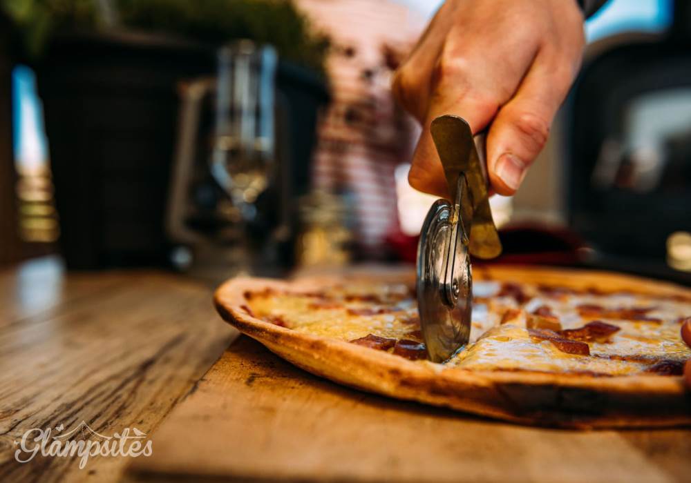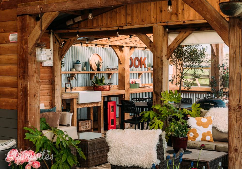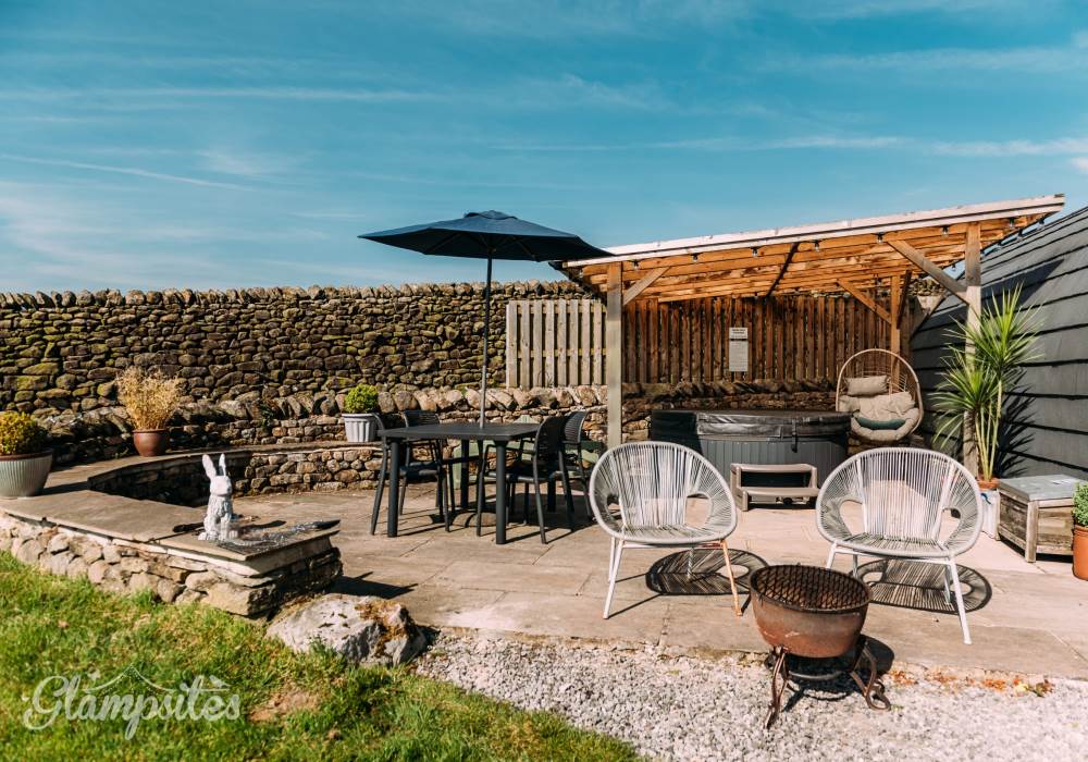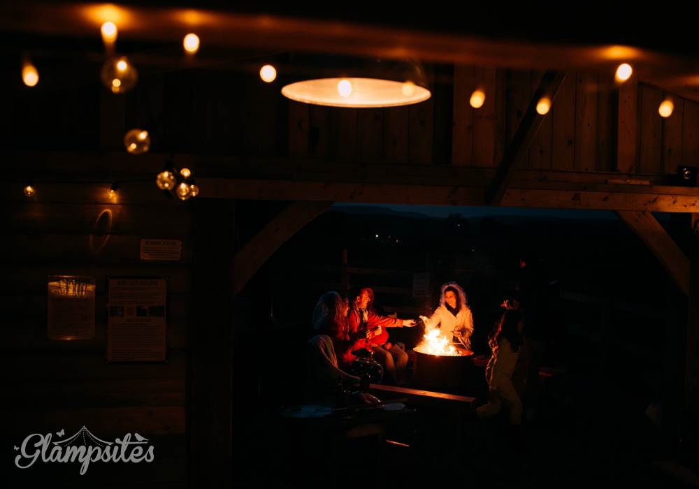 Peaks and Pods boasts 'The Hub' - a unique social space with a stunning Gozney pizza oven, large cast iron fire pit, Weber barbecue, sheltered cooking space, seating, lounge chairs, festoon lights, heating and wooden swing seat, perfect for all guests to enjoy.