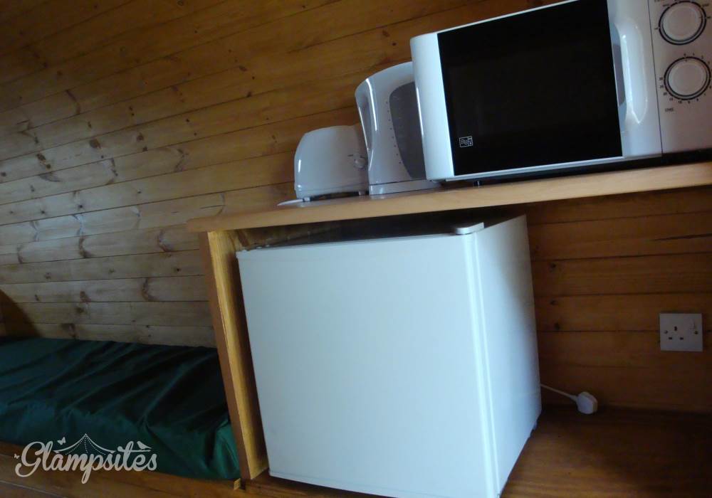 What’s included: Raised double futon style bed, 2 thinner single raised futon style beds, A heater, Indoor & outdoor lighting, kettle, fridge, toaster, microwave, electric sockets, small covered prog area, grassed area, with a picnic bench & space for a BBQ.
