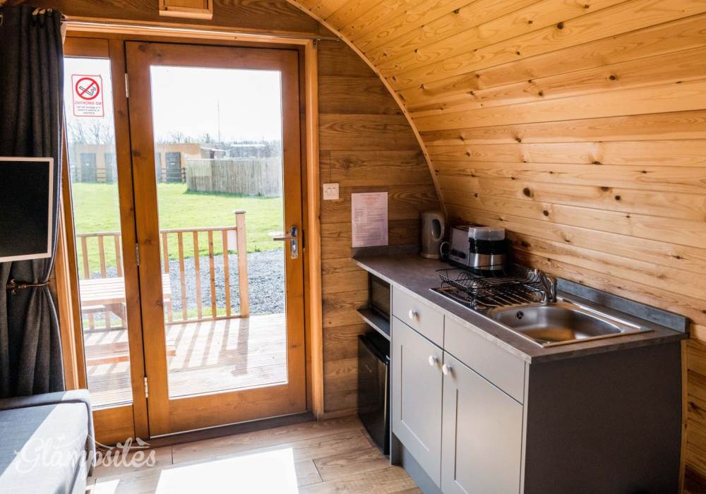 Finished with underfloor heating keeping the Pod cosy all year, a small kitchen area (with sink, microwave, kettle, fridge and multi-use toaster) and flat screen TVs, everyone can enjoy the experience of camping with a few of life’s usual luxuries!