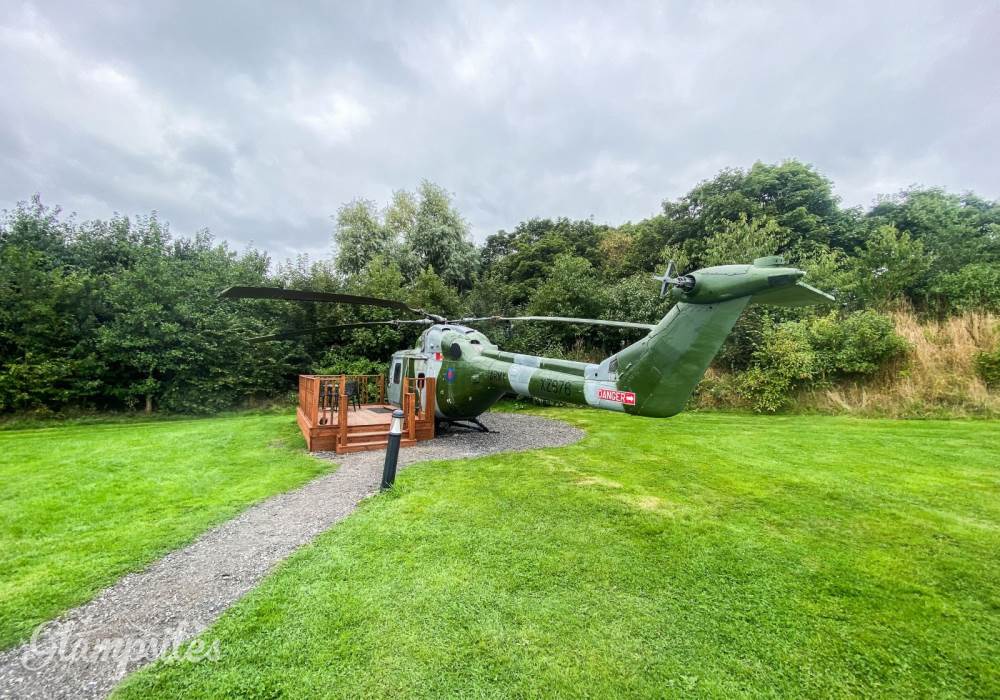 We booked the helicopter for a present for our 7 year old grandson. The accommodation is very cramped nowhere really to sit. Its advertised as big enough for 2 adults and 2 children but there were only 3 of us and it was hard. There is a decking area which will be good in the summer but no use on a wet October night. There is no toilet and although you know this when you book it says use of site toilets and showers. What it doesn't say is these are quite a distance from the helicopter and if you have to use the bathroom during the night it's dark so you need a torch. Also because it's so cramped you wake up the other people in your party to get out. Not particularly clean and a bit musty smelling. That said our grandson loved it.