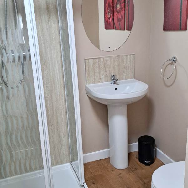 We enjoyed our stay in the chalet it was clean and comfy. This our second visit to the park Just a couple of things. In the shower a shelf of or hanging basket Could do with thicker pillows as they went flat The cigarette bin regular emptied when new lets arrive it looked like we were Chainsmokers and none of us smoke