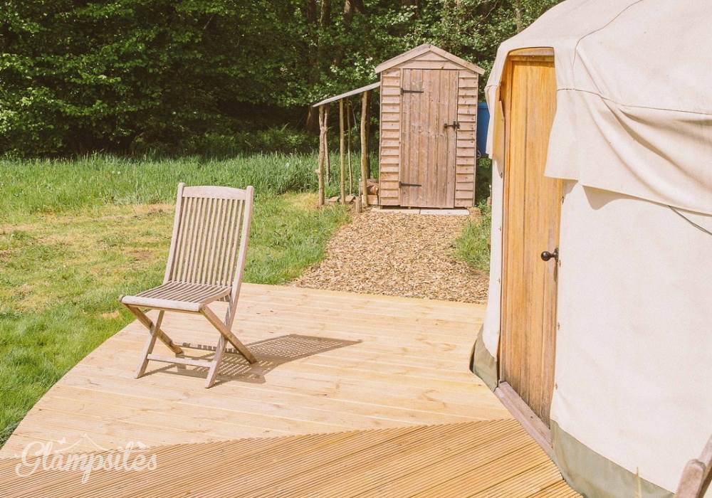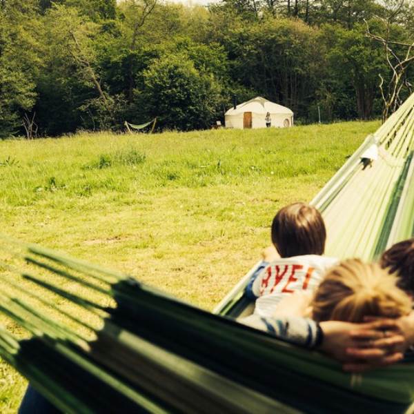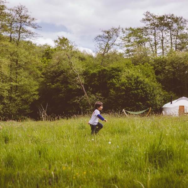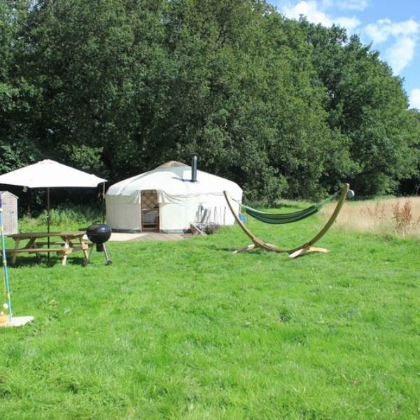 Our yurts have a large curved deck providing the perfect place to sit with a cuppa and take in the views. Our yurts are each positioned across the meadow, allowing guests to enjoy privacy and seclusion. Your own massive and superbly comfortable hammock, picnic table, charcoal bbq and swing tennis set are awaiting you outside your yurt. There's a private eco toilet alongside each yurt - no long walks in the night to go to the toilet! The yurts are positioned in a meadow with leading paths, a communal campfire and a football-friendly area.