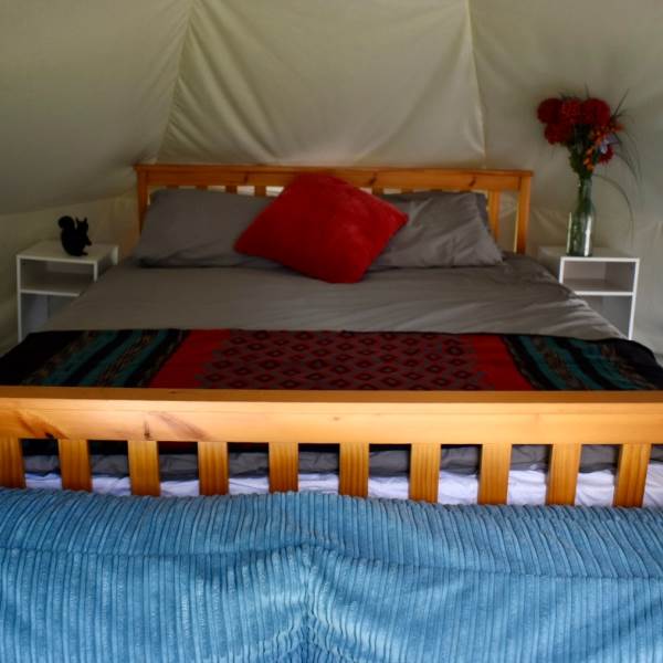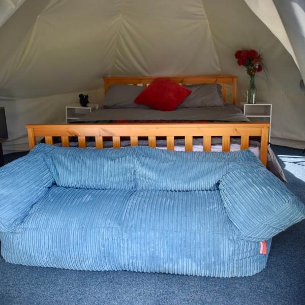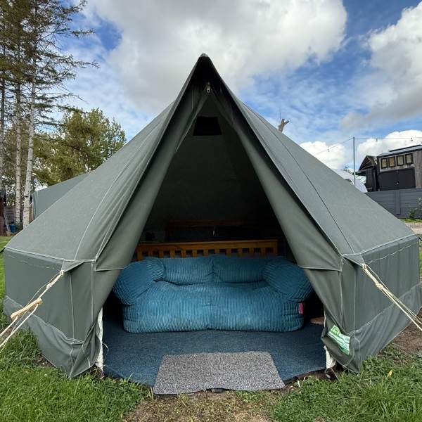 Perfectly positioned in the centre of the site, Stockies offers the best of both worlds: a peaceful glamping escape with the added ease of being just steps away from the shared kitchen and bathroom facilities. Whether you're planning a family break or a small getaway with friends, this cosy bell tent makes countryside living feel easy and enjoyable.