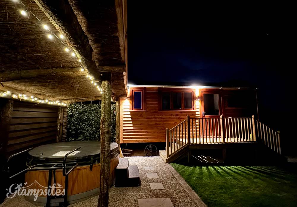 The hot tub with lights and jets is just to the side of the seating area and is surrounded by fairy lighting for those romantic evenings. The hot tub is undercover, making it suitable to use in all weathers! There is also enough space for undercover seating. There is a manual provided in the hut which features local attractions and there is a large parking area located just at the back of the huts.