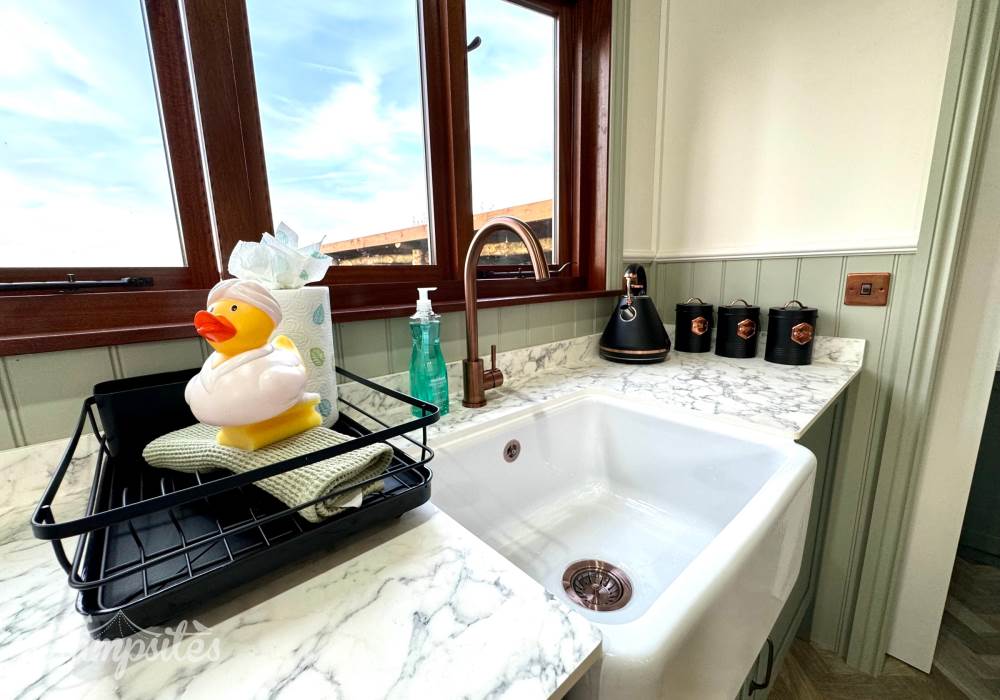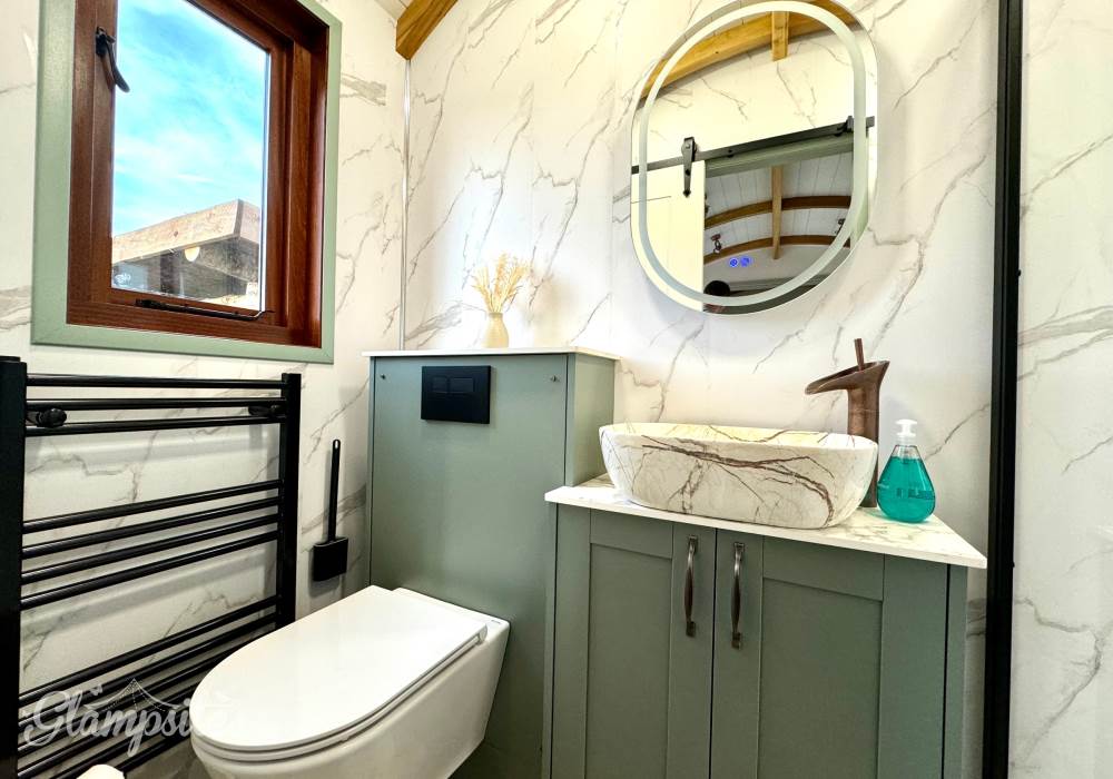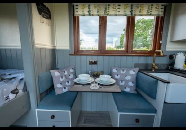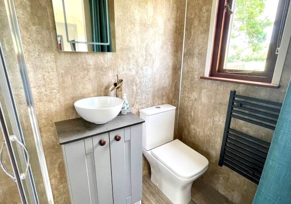 Copper Beech has sweeping countryside views from the inside and out in the garden, it's perfect for a peaceful and relaxing break! The hut boasts a king sized hybrid mattress bed, seating area with a table for meal times or relaxing, an equipped kitchen with all utensils & crockery, integrated fridge with small freezer, integrated microwave oven, air fryer, kettle & toaster, heating with Nest controlled thermostat, induction hob, sink and draining tray. There is also a large en-suite with a rainfall shower.