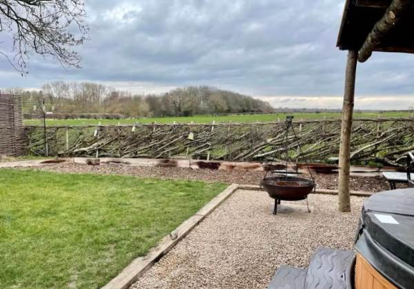 The garden is fully enclosed and we are pet friendly! It’s got gravel, patio & a lawned area, table & seating, large firepit/BBQ and plenty of shade for those sunnier days! The fire pit includes all the utensils needed to cook with! You get one small basket of wood provided along with 2 firelighters. More is available to purchase on site.