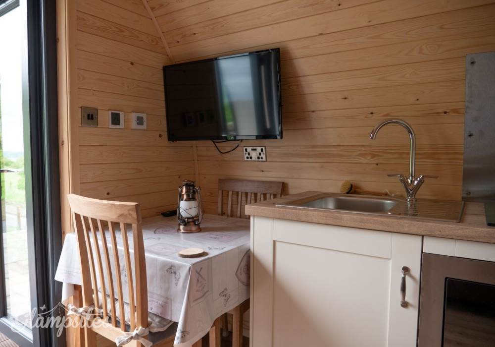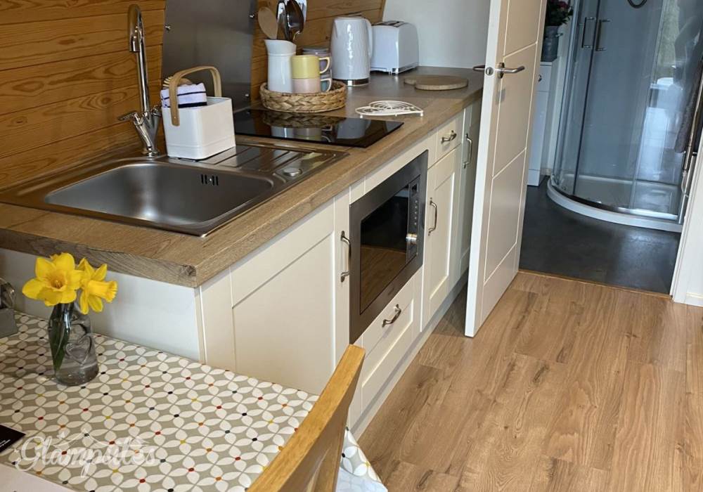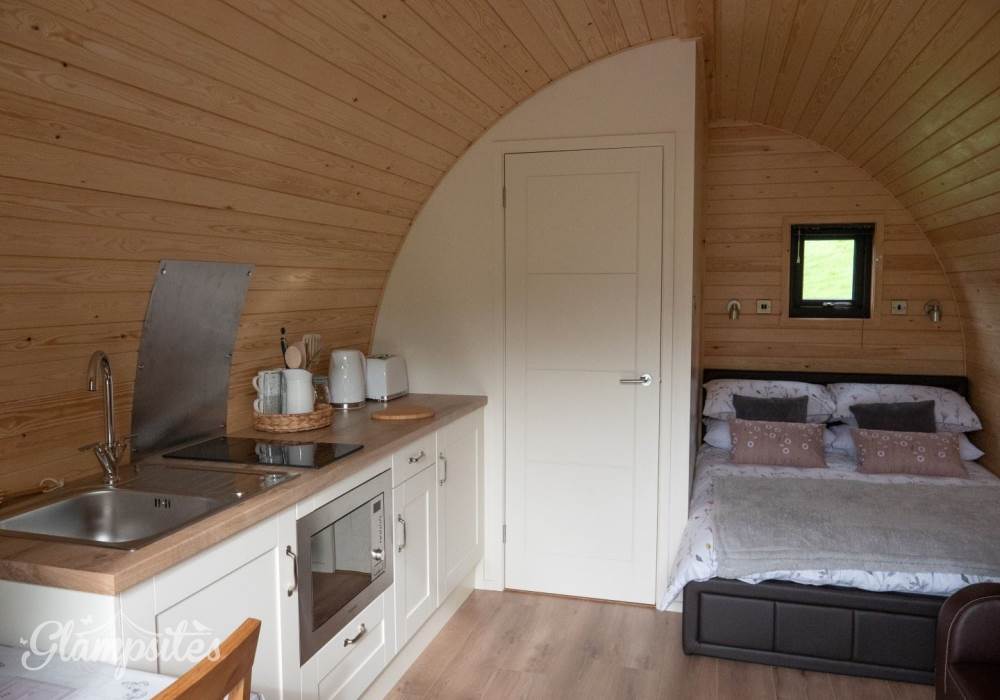 Each of our pods feature a kitchenette area which includes a sink, combi microwave and grill, fridge, kettle and toaster. This pod also comes equipped with all crockery and cutlery for your stay.